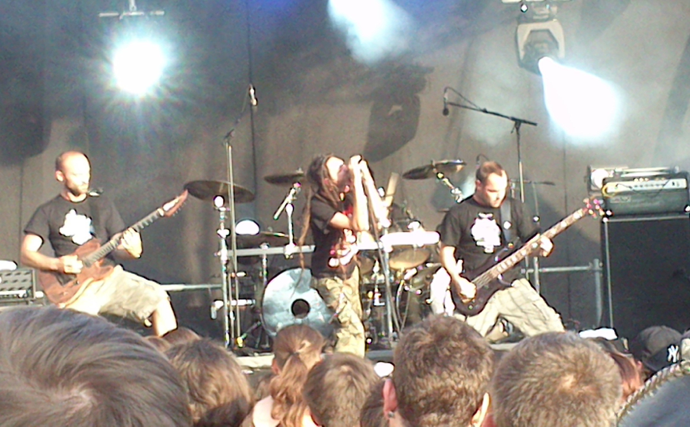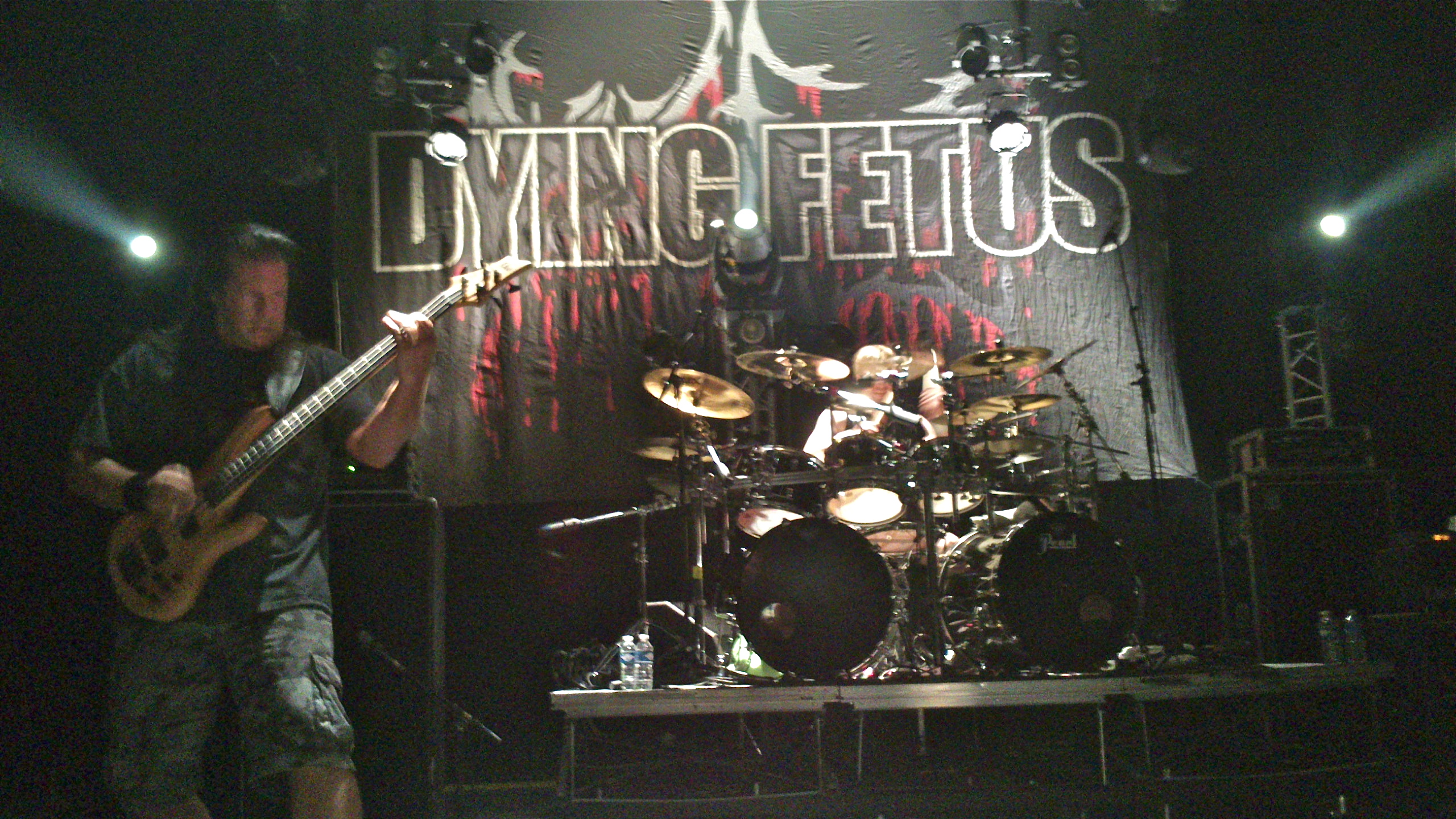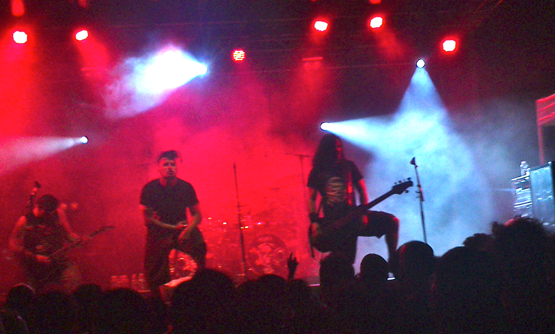 Bon ça y est les poids lourds arrivent, à commencer par Dying Fetus (USA), célèbre groupe de brutal-death metal doté d’un sens du groove qui rassemble au-delà des fans de death. Et oui c’est pas parce qu’on joue du brutal-death qu’on n’a pas de personnalité (bon OK y en a beaucoup qui n’en ont pas). Dying Fetus a un style très reconnaissable : hyper-rapidité et technique, chant porcin à 50%, parties dansantes mid-tempo (« moshables » devrais-je dire), et solos mélodiques. Le groupe de John Gallagher (seul membre d’origine) a frappé très fort l’an dernier avec Reign Supreme; il était donc d’autant plus attendu.