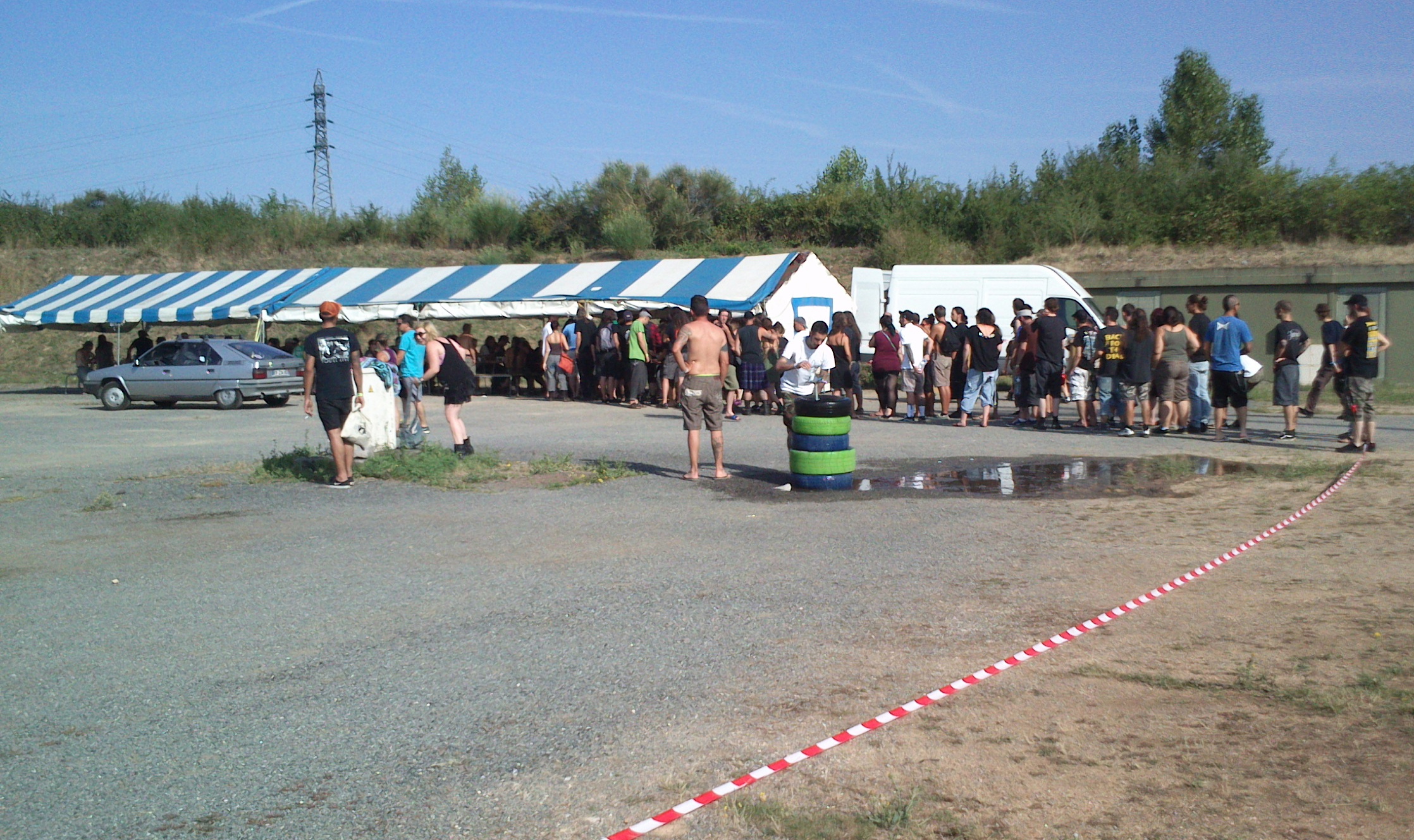 Retour à l’extérieur avec Trepalium (Bressuire), groupe qui joue un death metal « groovy » (comprendre influencé Pantera) assez technique. J’étais curieux de découvrir, mais j’ai été déçu. Les riffs et rythmiques ne sont pas parvenus à m’entraîner. En fait aucun morceau ne m’a marqué. Par ailleurs le son très exagéré de la double grosse caisse m’a gêné. Attention, pas question d’enterrer ce groupe! Il faudrait que je vois ce que ça donne en studio et prendre le temps de découvrir leur musique. S’il y a autant de critiques positives à leur égard cela ne peut pas être un hasard. En tout cas les musiciens ont dû sacrément souffrir de la chaleur. Rien que pour ça : respect.