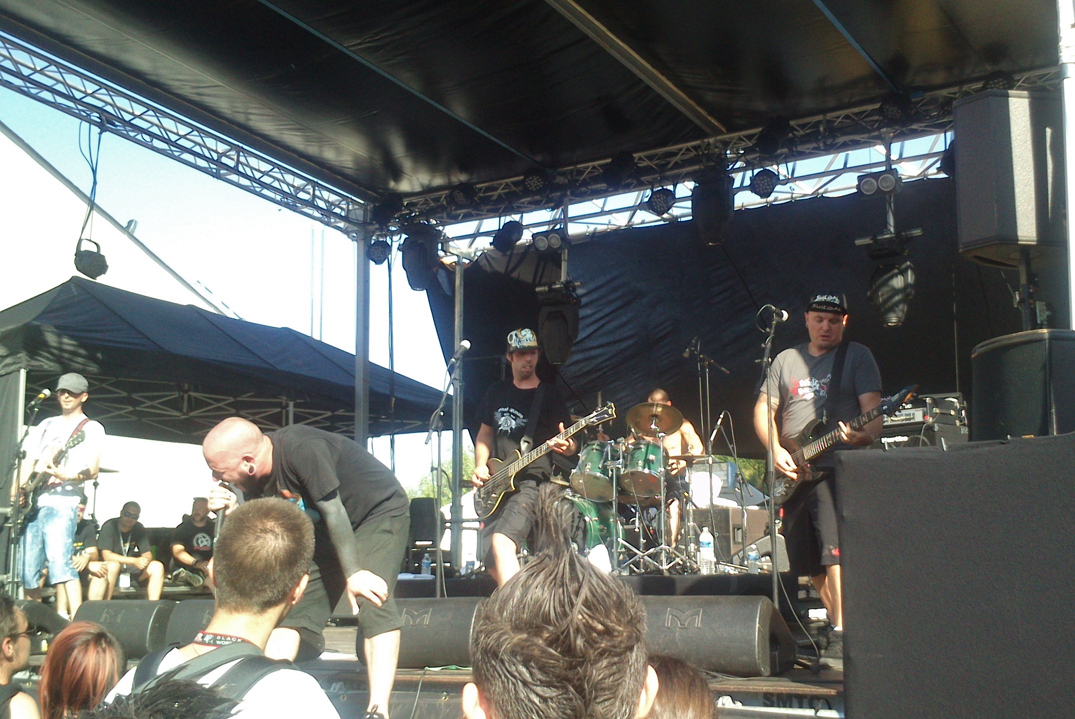 Après Hatebreed, c’est une autre référence hardcore qui se présente au public – cette fois punk-hardcore : Comeback Kid (CAN). J’avais laissé le groupe après le fameux Wake The Dead (2005) et le très bon concert au Hellfest 2008. A tort, car ce concert s’est avéré excellent! L’ambiance survoltée a mis un peu plus de temps à s’installer que pour Hatebreed, la fatigue commence à se faire sentir (en tout cas pour moi), mais finalement tout le monde s’est transcendé. Le groupe joue ses classiques, et – ô bonheur – des pile-on permettent au public de participer. J’ai d’ailleurs tenter une approche sur la reprise de Territorial Pissings de Nirvana, histoire de me refaire une jeunesse.