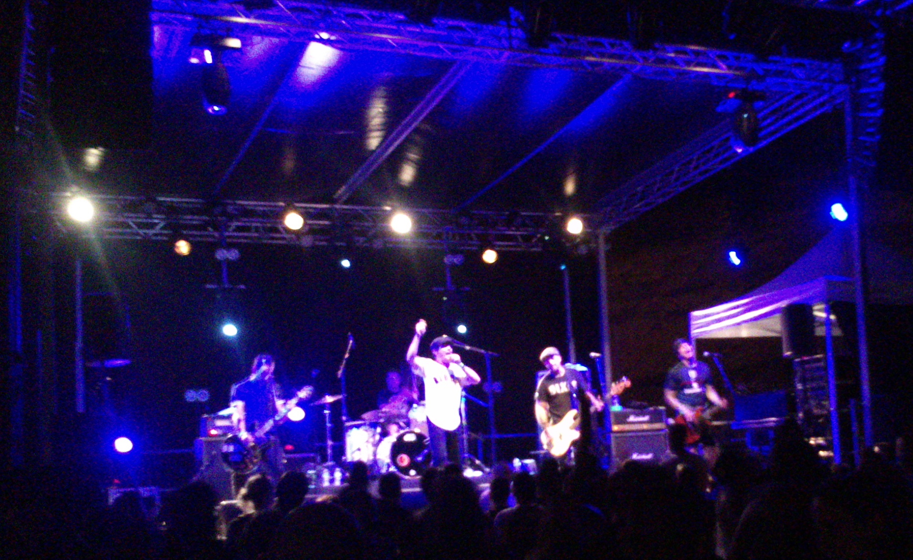 Pour clôturer cette première journée les Uncommonmenfrommars (F) vont essayer de maintenir l’enthousiasme de la foule avec leur punk-rock énergique. Je crois pouvoir dire que la mission fut accomplie, même si je ne suis pas un fan du groupe et que les morceaux peinaient un peu à s’enchaîner. Ceux-ci proposent une variété rythmique assez inhabituelle pour du skate-punk (du moins j’en ai eu l’impression à l’écoute du concert), et il est évident que les musiciens (dont trois frères nés aux États-Unis) maîtrisent leur discipline. J’ai bien aimé la descente d’Ed (guitare et chant) dans le public pour jouer les derniers morceaux. Sympa. Très sympa.