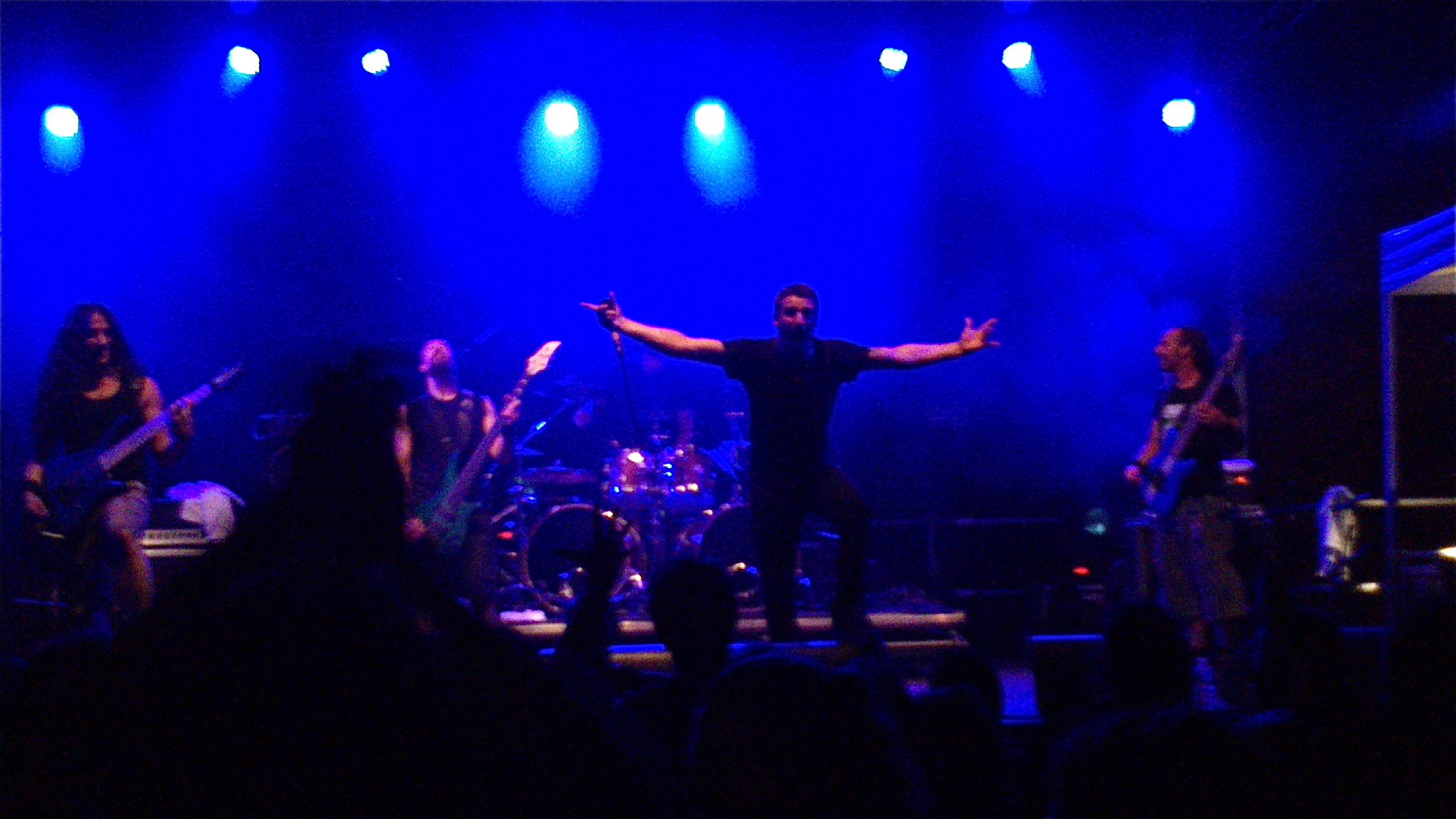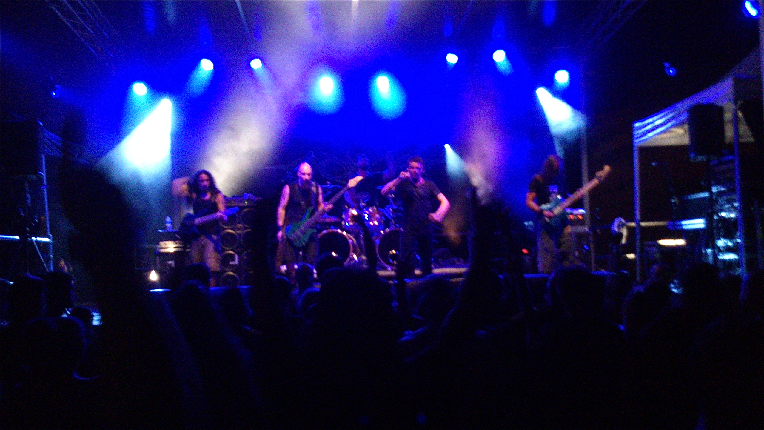 En plein air et désormais en nocturne, c’est Dagoba (Marseille) qui prend le relais. Je n’ai jamais été convaincu par ce groupe, et je n’ai pas changé d’avis à la suite à cette prestation. Je trouve leur power metal années 90 (en plus bourrin) particulièrement pénible. En fait, je ne comprends pas leur musique, il n’y a rien qui retienne mon attention. Pour ne rien arranger, le son de la double grosse caisse est tellement assommant que ça en est ridicule. Bref, je ne vais pas m’acharner sur ce groupe, qui est probablement sincère dans sa démarche et qui a de l’énergie à revendre… Une petite remise en cause pourrait s’avérer salutaire. Car je suis certain que ces mecs sont capables de mieux.