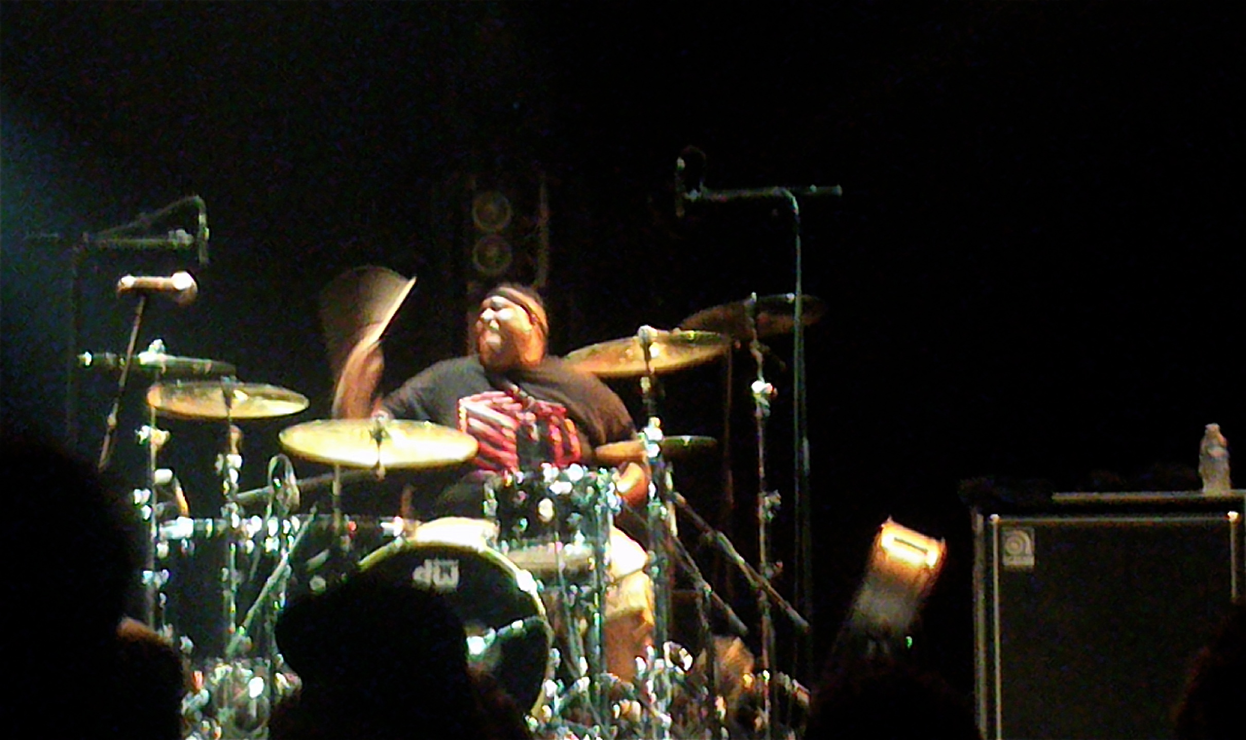 Malgré plusieurs breaks et de multiples changements de line-up, Mike Muir est parvenu à maintenir le navire à flot. A l’écoute du nouvel album 13 (le premier véritable album depuis 13 ans) je dirais même qu’il a su maintenir le cap. Ci-dessus, Eric Moore, impressionnant (et volumineux) batteur qui joue aussi dans Infectious Groove, met le feu et nous claquera un solo.